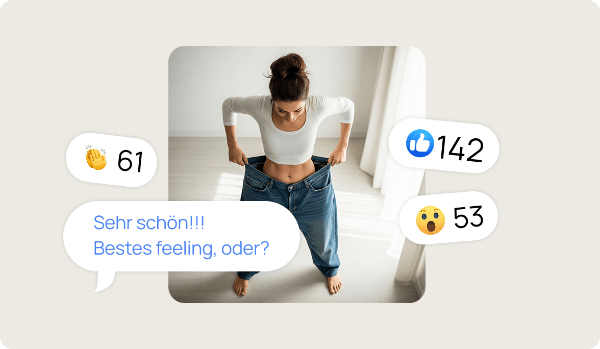 Unser Ziel ist dein nachhaltiger Erfolg. Die Medikamente sind ein starkes Werkzeug, um den Abnehmprozess zu starten. Der Schlüssel zum Halten des Gewichts ist unser ganzheitliches Coaching. Während du die Medikamente nimmst, arbeitest du intensiv mit Ernährungs- und Verhaltensexperten zusammen, um gesunde, nachhaltige Gewohnheiten zu etablieren. Diese neuen Routinen sind die beste Versicherung gegen den Jo-Jo-Effekt.
